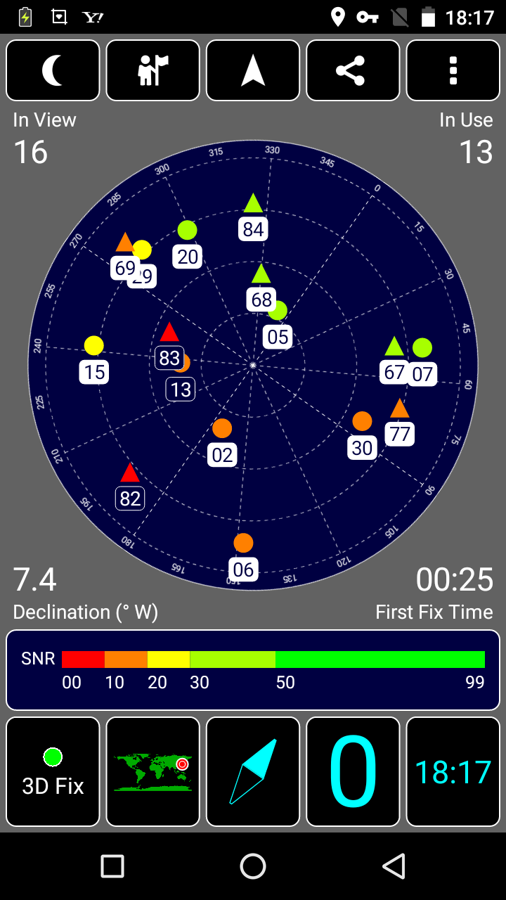 WI-FIを切った状態、いわゆる3GもLTEも接続なしの純粋のGNSSのみでコールドスタートで25秒と。なかなかの出来です