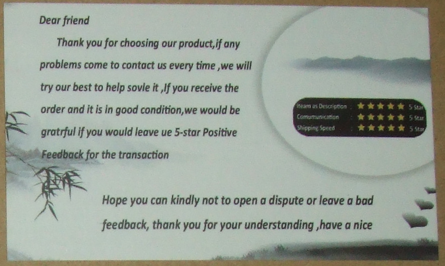 今回は色も間違いなく、また敏速に発送してもらい。私が取引したSellerの中でも