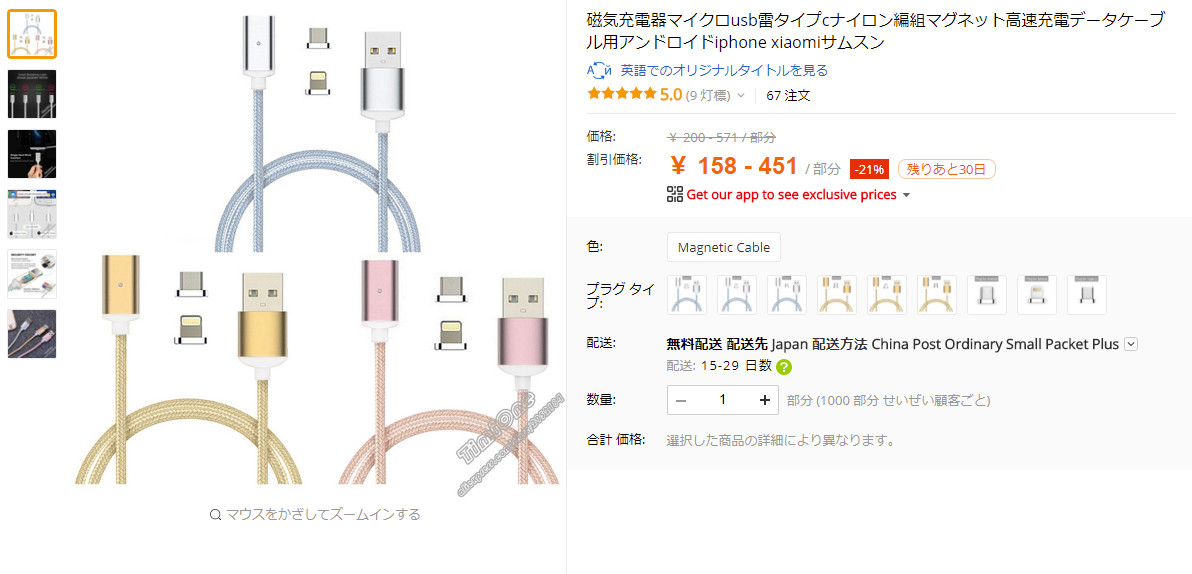 ちなみaliexpressではどうか