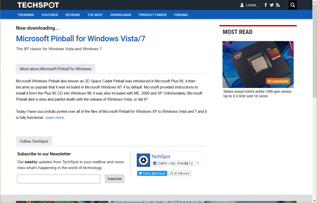 昔懐かしいマイクロソフトピンボールがWindows10でも出来るって