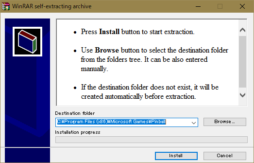「Windows 3D ピンボール Space Cadet」のインストール