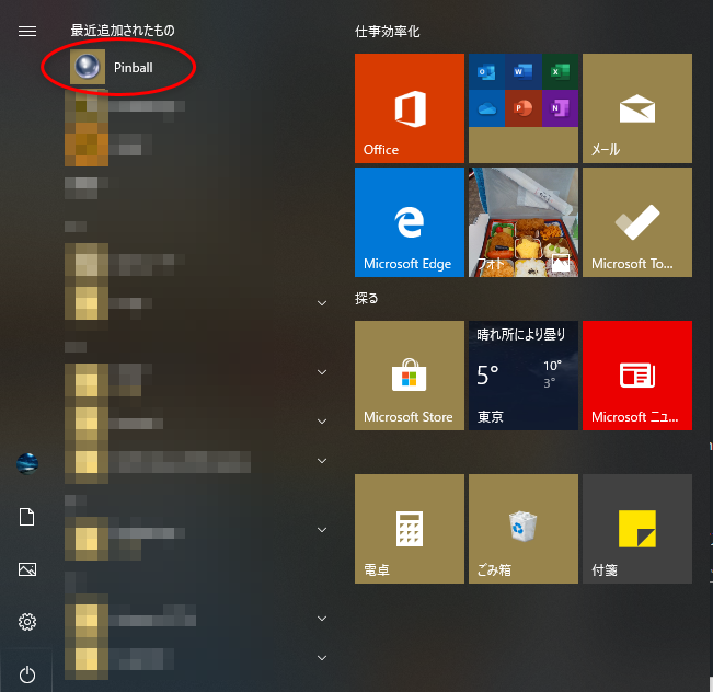 でもデスクトップ上に「pinball」アイコンが出来ており、