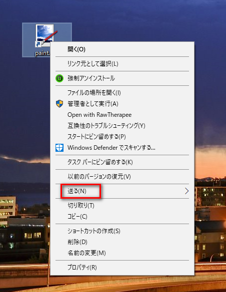 「送る(N)」を使ってファイルやフォルダを移動させる