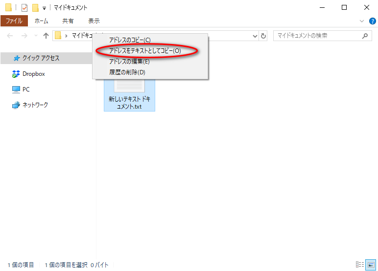 まずはエクスプローラーから適当なところ、どこでもよいのですが今回の例も「マイドキュメント」フォルダで行きます。