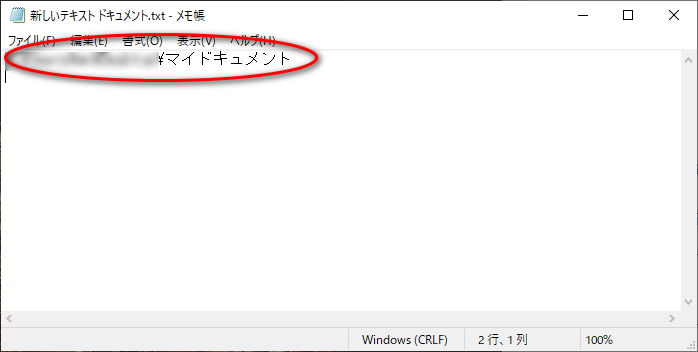 先ほど作った「マイドキュメント上の新しいドキュメント.txt」をダブルクリックして立ち上げる