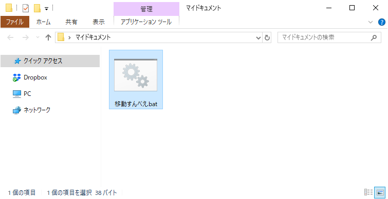 このままだと移動したいファイル上でこのbatファイルを選択すると実行する度にDOS窓が開いてしまいます。