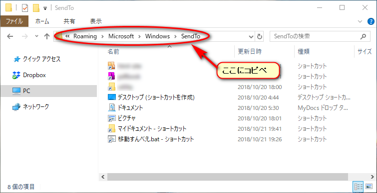 Windows10のかゆいところに手が届く。「送る」フォルダをダイレクトに呼び出す呪文とその活用法RS5(October 2018 Update(1809))対応版