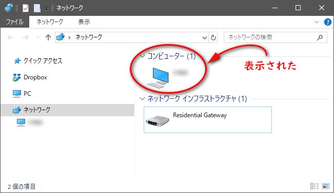 目的のネットワークコンピュータが表示されたら完成