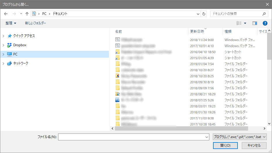 ここでもしどのアプリで起動するかがわかっていればそれを探し実行ファイルを選択すればよい。