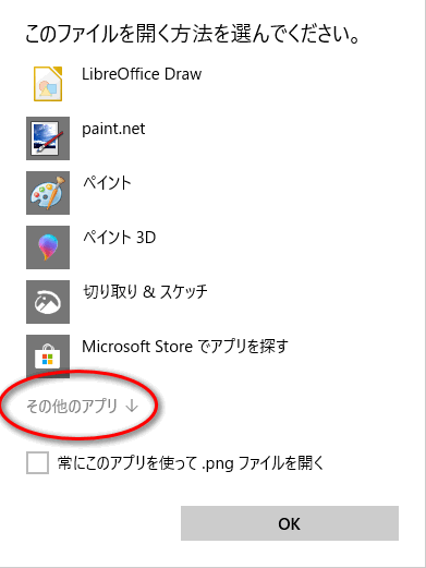 その他のアプリをクリックすると下記のダイアログが出てくる。