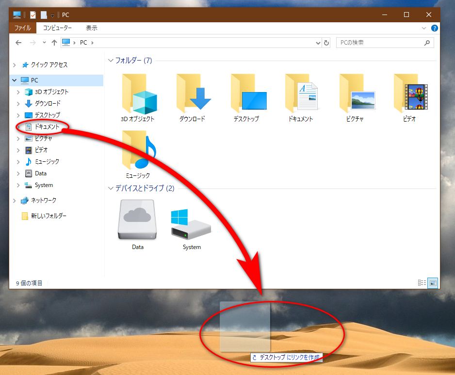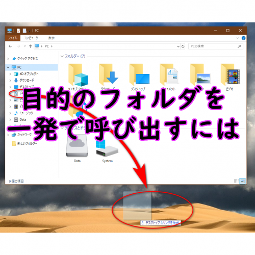 するとデスクトップ上に目的までのフォルダのショートカットアイコンができているはず。これをダブルクリックするなりして起動させると一発で目的のフォルダを開くことができる。