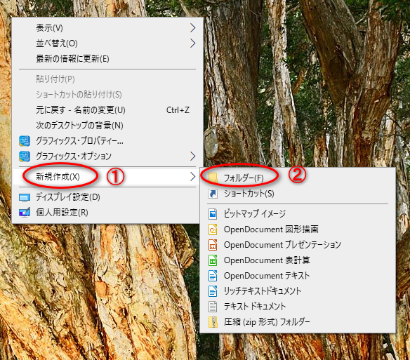 まずデスクトップ上から右クリックしてフォルダを作成。