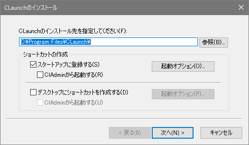 「スタートアップに登録する(S)」はデフォルトでチェックが入っているためシステム起動時に起動させたくない人はチェックを外しておくとよい。