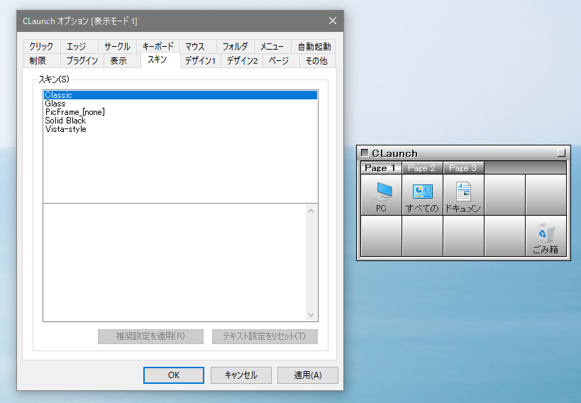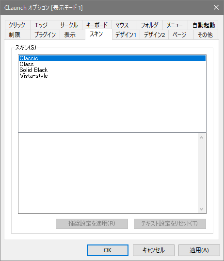 ここでは4種類のスキンが登録されています。好きなものに変更して使ってください。また外部からのスキンも登録できます。