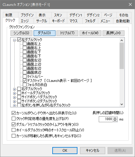 ランチャーを表示させるトリガーを設定できます。デフォルトでは「ダブルクリック」のデスクトップのみにチェックが入っています。