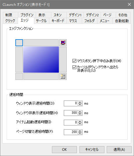 このままでも十分ですが例えばマウスボタンの長押しで起動させたいとかの場合はここで設定します。