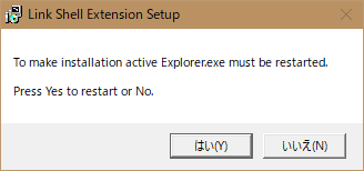 途中エクスプローラーを再起動する旨のダイアログがでますのでそのまま「はい」ボタンを押すとその場でShellとなっているエクスプローラーが再起動します。